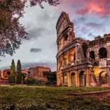 Užite si naozaj krásny panoramatický pohľad na Koloseum pri západe slnka so všetkými detailmi, ktoré dodávajú obrazu dychberúcu realistickosť.