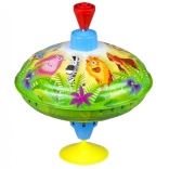 Káča s motívom džungle zaujme veselými obrázkami zvierat a príjemným „bzučiacim“ zvukom pri točení. Je ideálna na prvé hry, učí deti vnímať príčinu a následok a podporuje sústredenie. Prísavka na spodnej strane zabezpečuje lepšiu stabilitu a bezpečnejšie hranie na rôznych povrchoch.