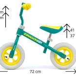 Odrážadlo je vybavené nafukovacími 10" kolesami, ktoré poskytujú plynulú jazdu na rozmanitých povrchoch. Pribalený zvonček pridáva na bezpečnosti pri jazde, zatiaľ čo celková konštrukcia spĺňa európske bezpečnostné normy, garantujúce kvalitu a spoľahlivosť výrobku.