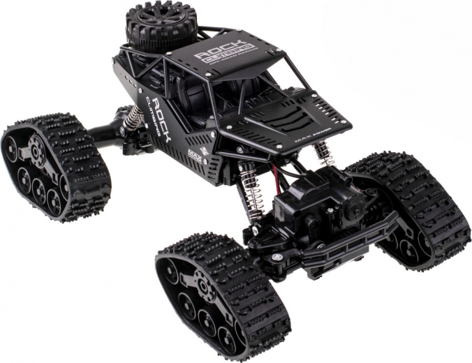 Zábavné a odolné RC auto do terénu s pohonom 4x4, vymeniteľnými kolesami za gumové pásy a ovládačom 2,4 GHz. Vďaka pružinovému odpruženiu a veľkým gumovým pneumatikám si poradí s rôznymi povrchmi. Jednoduché ovládanie je ideálne pre začiatočníkov aj deti od 6 rokov.