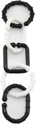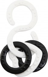 Prepojiteľné silikónové očká s reliéfom masírujú ďasná, podporujú hmat a umožnia ľahké uchopenie. S-háčiky pripevnia hračky ku kočíku alebo autosedačke.