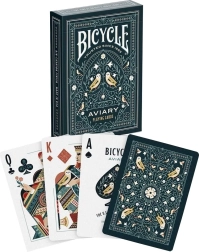 Pozdvihnite svoju ďalšiu kartovú partiu s elegantnými kartami BICYCLE Aviary. Táto nádherne spracovaná a plne personalizovaná edícia ponúka Air-Cushion povrch pre ľahké miešanie a plynulé kĺzanie, je tlačená netoxickými rastlinnými atramentmi a balená do úplne recyklovateľných materiálov. Ideálne na hraní hry, kúzla aj pre zberateľov.