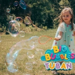Použitie je jednoduché: namočte nástroj do roztoku TUBAN a jemnými pohybmi vytvárajte obrie bubliny. Dúhové bubliny a tunely určite zaujmú každého malého dobrodruha. Hra plná smiechu a radosti je zaručená.