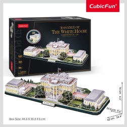 Zábavná a zároveň precízna stavebnica zo série CUBICFUN LED premení váš stôl na slávny Biely dom. Diely z cca 3 mm peny potiahnutej laminovaným potlačeným papierom zabezpečujú kvalitný vzhľad aj stabilitu modelu. Verné architektonické detaily potešia milovníkov histórie, dizajnu aj nápaditých dekorácií.