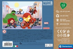 Detské puzzle z ekologickej rady CLEMENTONI Play for Future prinášajú obľúbených hrdinov z univerza MARVEL AVENGERS na 104 pevných dielikoch. Vyrobené zo 100% recyklovaného papiera s biologicky odbúrateľnou lamináciou a netoxickými materiálmi. Po zložení má puzzle približne 48,5 × 33,5 cm a je opäť 100% recyklovateľné.