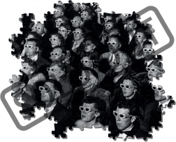 Klasická fotografia publika s 3D okuliarmi dodá interiéru štýl a výrazný kontrast. Po zložení je obraz pripravený na zarámovanie.