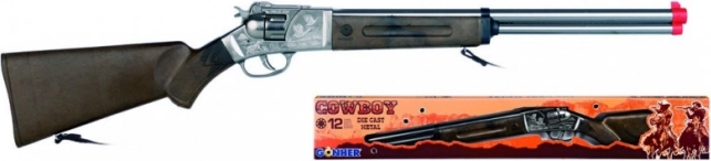 Táto kovbojská kovová puška na 12 nábojov s bubienkom je ideálna na tematické hry, kostýmy aj zberateľské výstavy. Robustná kovová konštrukcia a precízne spracovanie značky Gonher dodávajú hračke autentický vzhľad a dlhú životnosť.