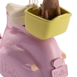 Vyrazte za dobrodružstvom s bábikou BARBIE na štýlovom ružovo‑žltom skútri so striebornými detailmi. Bábiku bezpečne usadíte vďaka špeciálnemu úchytu sedla, zatiaľ čo rozkošné šteniatko povezie v zadnom košíku. Nechýba žltá prilba pre bezpečnú a štýlovú jazdu. Ideálne na kreatívne hranie a príbehy na cestách. Bábika nie je súčasťou balenia.