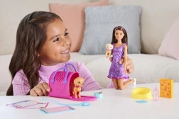 Zábavný set Barbie Starostlivosť o psíky vyzýva na starostlivosť a starostlivosť o zvieratá. Obsahuje bábiku Barbie, dvoch psíkov a doplnky s funkciou zmeny farby.