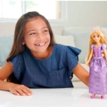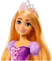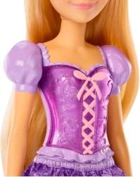 Bábika RAPUNZEL v ikonických fialových šatách žiari na každom kráľovskom bále. Lesklý top a odnímateľná sukňa s jedinečným vzorom podčiarkujú jej princeznovský štýl, zatiaľ čo tiara a črievičky dotvárajú dokonalý vzhľad. Vďaka kĺbom ľahko zaujme rôzne pozície a je pripravená na každé dobrodružstvo.