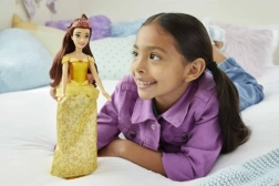 Objavte čaro sveta DISNEY s bábikou Belle v jej ikonickej žltej róbe. Táto pôvabná princezná má dlhé hnedé vlasy vhodné na česanie, trblietavý top a odnímateľnú sukňu s jedinečným vzorom. Vďaka pohyblivým kĺbom ľahko zaujme rôzne pózy na hranie aj vystavenie.
