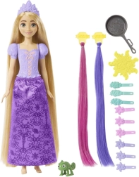 V balení nájdete 9 štýlových doplnkov do vlasov, kefku v tvare panvičky a figúrku Pascala, ktorú možno pripnúť na ruku bábiky. Locika má trblietavú fialovú odnímateľnú sukňu a tiaru ako vo filme. Skvelý darček pre deti, ktoré milujú rozprávky a hranie rolí.