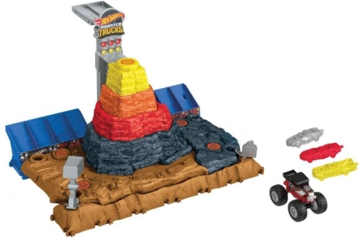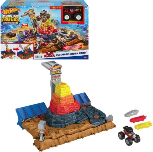 Vďaka ľahko rozpoznateľným miestam na rozbíjanie zažijú deti epickú demolicu, keď rozbijú kopu áut v hernom sete Hot Wheels® Monster Trucks Aréna: Bone Shaker finále! Otrasová funkcia v sete pridáva dunenie a vibrácie a 2 zdemolované autá sa postarajú o epickú deštrukciu. Súčasťou je 1 Hot Wheels® Monster Trucks Bone Shaker™ v mierke 1:64. Farby a vyhotovenie sa môžu líšiť. Vek 4+