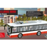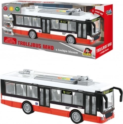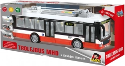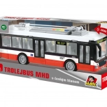 Tento detailne spracovaný trolejbus prináša deťom autentický zážitok z mestskej dopravy. Hračka prehráva hlásenia zastávok v slovenčine (Hlavná stanica, Mestské divadlo, Zoologická záhrada) a je doplnená o atraktívne svetelné efekty. Vďaka pohonu na zotrvačník stačí trolejbus postrčiť a rozbehne sa vpred.