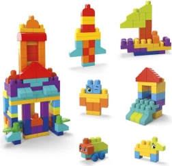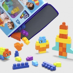 Rozvíjajte fantáziu svojho malého staviteľa s Mega Bloks Poradne veľkým vakom kociek - modrým, v ktorom nájdete 150 veľkých farebných kociek a špeciálnych dielikov, vrátane kociek s očami, s kolieskami a tiež v tvare lístka či striech. Tieto kocky, ktoré sú ideálne pre malé ručičky, sa dajú ľahko uchopiť a jednoducho skladať na seba, čo pomáha rozvíjať jemnú motoriku, kreativitu a predstavivosť. Kocky do seba ľahko zapadajú a tiež sa dajú jednoducho rozobrať. Po skončení hrania možno kocky uložiť späť do vaku a ľahko ich upratať. A čo je najlepšie, tieto kocky možno kombinovať s akoukoľvek hračkou alebo sadou kociek Mega Bloks, takže sa hranie vášho batoľaťa predĺži na dlhé hodiny. Materiál plast. Vek 1+