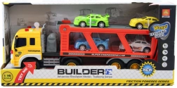Zábavný kamiónový prepravník na batérie prináša deťom od 3 rokov hodiny hry. Po stlačení tlačidiel svieti a vydáva realistické zvuky, súčasťou sú 4 plastové autíčka. V mierke 1:16 a s rozmermi cca 40 × 12 cm ponúkne skvelú veľkosť pre domáce autodráhy aj voľnú hru.
