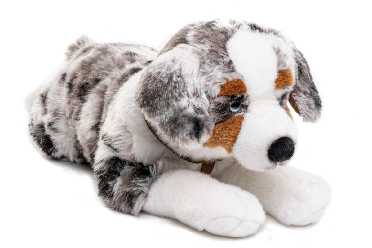 Roztomilý plyšový psík plemena Austrálsky ovčiak poteší deti aj dospelých svojou mimoriadnou hebkosťou, realistickým vzhľadom a veľkou hrateľnosťou. Vďaka priloženým postrojom je ideálny na maznanie, hranie aj ako dekorácia do detskej izby. Vhodné už od 0+.