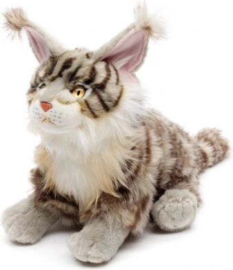 Táto štýlová plyšová mačka inšpirovaná plemenom mainská mývalia vyniká realistickým vzhľadom, jemným chĺpkom a precíznymi detailmi tváre. Je vyrobená z mäkkých a odolných materiálov, ktoré sú príjemné na dotyk a vhodné na každodenné hranie aj zaspávanie.