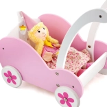 Ružovo-biely dizajn a kvetinové motívy na kolieskach dodávajú kočíku atraktívny vzhľad, ktorý podporuje detskú predstavivosť.