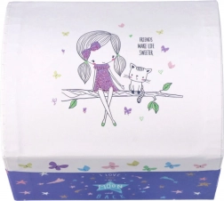 Táto krásna hudobná skrinka s motívom "Priatelia" je ideálnym darčekom pre deti od 6 rokov. Ozdobená farebnými vzormi a kúzelnými obrázkami prináša nielen úložný priestor, ale aj melódiu, ktorá poteší každé oko a ucho.