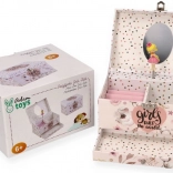 Roztomilá šperkovnica s hracím strojčekom a otočnou balerínou poteší každú malú parádnicu. Má prehľadné priehradky, vankúšiky na prstienky, výsuvnú zásuvku a oválne zrkadielko. Ideálna na ukladanie šperkov a drobností a ako krásna dekorácia izby.