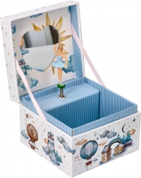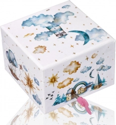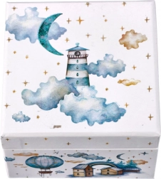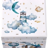 Skrinka je vyzdobená motívmi majákov, balonov a hviezd s romantickým nádychom, ktorý dodá každému izbe rozprávkovú atmosféru.