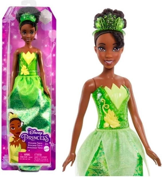 Objavte čaro rozprávky s bábikou DISNEY PRINCESS Tiana inšpirovanou filmom Princezná a žabiak. Má trblietavý outfit, ľahko snímateľné doplnky (topánočky a tiara) a vlásky vhodné na česanie – ideálne na kreatívne hranie a rozprávanie obľúbených príbehov. Bábika sama nestojí. Farby a detaily sa môžu líšiť.