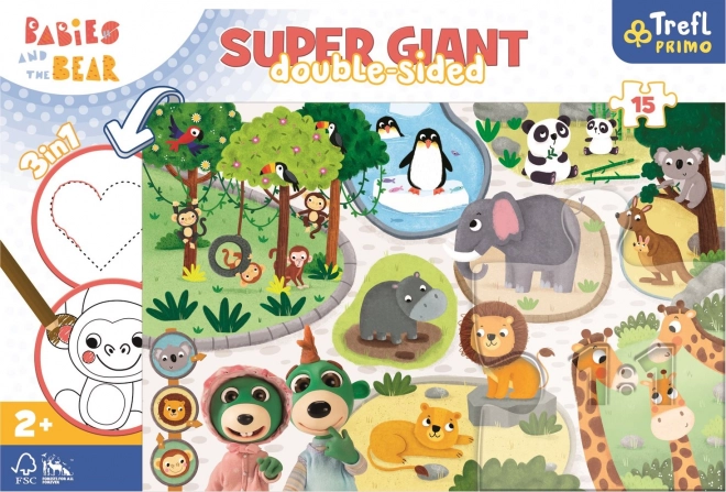Bobaski v ZOO je multifunkčná hračka, ktorá ponúka hneď tri úžasné možnosti, ako stráviť čas. Táto obrovská skladačka obsahuje 15 veľkých dielikov, skvelo vhodných pre malé ruky. S jej pomocou deti rozvíjajú svoje manuálne zručnosti, kreativitu a postreh.