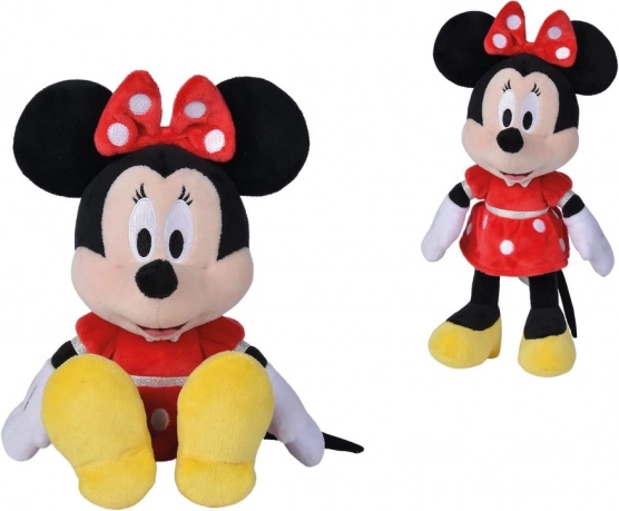 Roztomilá plyšová postavička Minnie Mouse s výškou 25 cm poteší malých aj veľkých fanúšikov DISNEY. Mäkučký materiál, klasické červené šaty s bielymi bodkami, žlté topánočky a vyšívané detaily z nej robia ideálnu hračku na mojkanie aj dekoráciu detskej izby.