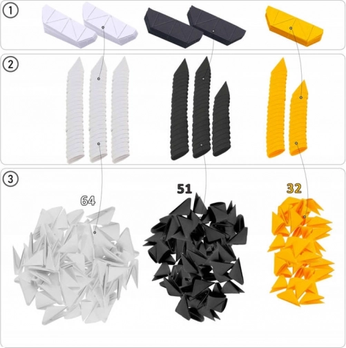 V balení nájdete 147 papierových prvkov a detailnú tlačenú inštrukciu. Pre vizuálne typy je k dispozícii aj video návod, ktorý prevedie celým procesom skladania. Sada je skvelá na domáce tvorenie, školské dielne aj ako darček pre malých tvorcov.