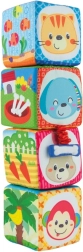 - 4 mäkké kocky s textilom a penovou výplňou pre bezpečné hranie.
