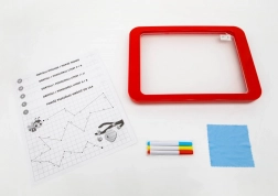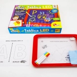 Tabuľa LED Carotina je ideálnym vzdelávacím nástrojom pre deti. Ponúka vzdelávací program založený na 30 výukových kartách, ktoré možno využiť prostredníctvom programovanej metódy kopírovania. Stačí umiestniť kartu na papierový podklad a vložiť pod transparentnú obrazovku tabule. Kreslenie sa vykonáva pomocou troch fluorescenčných fixov, ktoré sú súčasťou sady. Vďaka týmto fixom môžu deti kresliť opakovane a mazať kresby pomocou suchej utierky. Tabuľa LED je všestranná ako klasická tabuľa a svieti takmer ako neónový nápis!