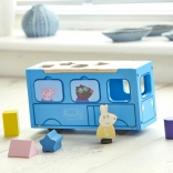 Drevený školský autobus PRASIATKO PEPPA je komplexná vzdelávacia hračka, ktorá spája radosť z pohybu s chytrou hrou. Deti môžu vkladať tvary do správnych otvorov, pripínať magnetické obrázky cestujúcich do okien a vďaka rotačným kolieskam sa s autobusom aj skutočne povoziť.