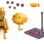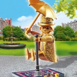 Tento pouličný umelec v nápadnom zlatom kostýme stojí nehybne, aby v pravý okamih mávnutím zlatého slnečníka pobavil svoje publikum. Kompaktná sada Playmobil Special Plus poteší skvelými doplnkami a ponúka množstvo herných scenárov na každodennú zábavu.