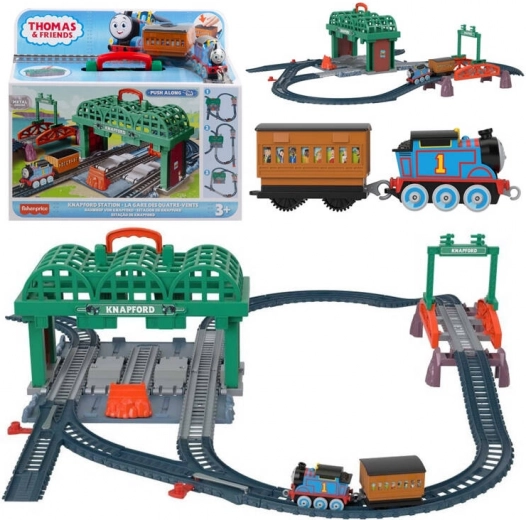 Zažite svet Ostrova Sodor so sadou Stanica Knapford od Fisher‑Price. Deti si postavia trať so stanicou, mostom a nadjazdom, po ktorej sa vydá mašinka TOMÁŠ na tlačenie s osobným vagónikom. Stlačením strechy sa vo vozni „objavia“ cestujúci – ideálny prvok na tvorbu vlastných príbehov a rozvoj fantázie.
