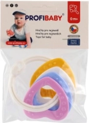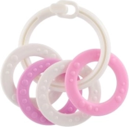 Textúry na povrchu krúžkov poskytujú dodatočnú stimuláciu pre ďasná detí počas prerezávania zubov.