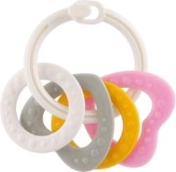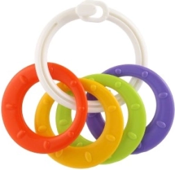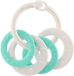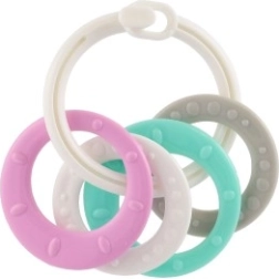 Vhodné pre deti od 3 mesiacov, tento hryzadlový set obsahuje farebné plastové krúžky, ktoré sú nielen ľahké, ale tiež napomáhajú vývoju jemnej motoriky. Vďaka rôznym štruktúram a tvarom poskytuje táto hračka viac zmyslových podnetov, ktoré sú určené pre teething obdobie dieťaťa.