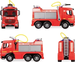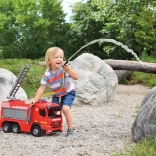 Praktické detaily ako otočný a odnímateľný rozprašovač na streche, rozkladací rebrík a jednoduché ovládanie pákou na boku podporujú aktívnu hru a koordináciu. Hračka je bezpečná, testovaná a vhodná na použitie vnútri aj vonku.