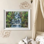 Scéna s bujnou zeleňou a padajúcou vodou pomáha navodiť sústredenie a duševnú pohodu počas skladania.