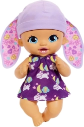 Bábika je vyrobená z odolného plastu, má výrazné modré oči, sladké ústa a fialkovú čiapočku s králičími uškami. Súčasťou je aj hryzadlo, ktoré podporuje zmyslovú hru. Balenie podporuje udržateľnosť – po rozbalení slúži ako praktická kolíska.