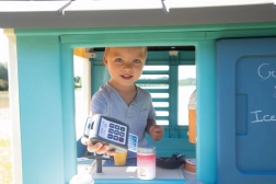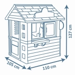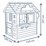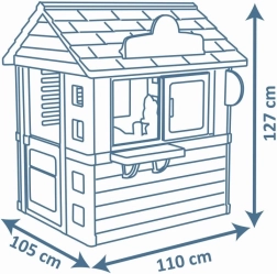 Domček je vybavený pevnými a stabilnými dvojitými plastovými stenami, ktoré odolajú aj nepriaznivému počasiu a silnému vetru. Rozmery 98 x 110 x 127 cm s celkovou výškou 127 cm umožňujú pohodlné hranie. Hračky spĺňajú najvyššie bezpečnostné kritériá.