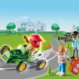 S Playmobil Záchrannou Akciou zažijete dramatické chvíle pri závode na motokárach. Vodič náhle stráca kontrolu nad vozidlom, ale lekár Mikey je okamžite na mieste, aby poskytol potrebnú pomoc. Všetko dobre dopadne, čo zaisťuje hodiny hrania s príbehom.