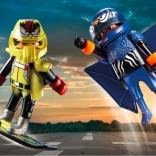 Zažite úžasnú kaskadérsku show s Duopackom Air Stuntshow od PLAYMOBIL. Tento set je navrhnutý pre deti rôznych vekových kategórií a podporuje ich fantáziu a kreativitu. Obsahuje dve figúrky, z ktorých jedna prekonáva prekážky na hoverboarde, zatiaľ čo druhá lieta vysoko nad zemou.