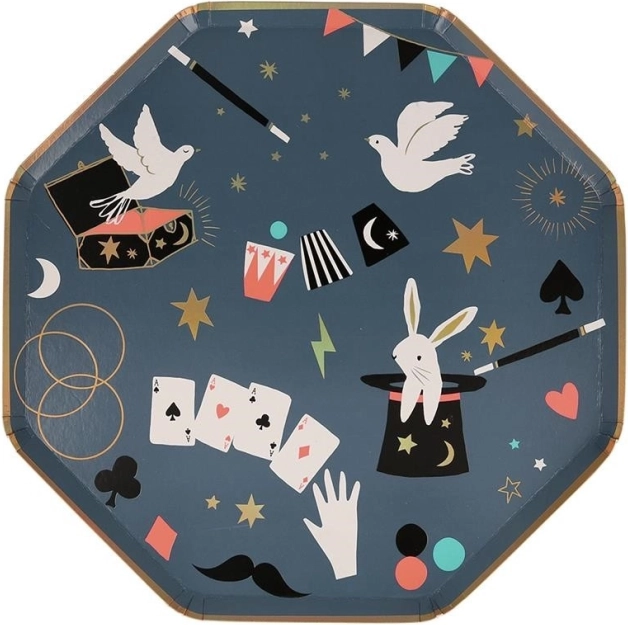 Papierové taniere Abrakadabra sú ideálnou voľbou pre vašu ďalšiu oslavu alebo špeciálnu príležitosť. Tieto taniere spoja estetický vzhľad s funkčnosťou, pričom prinášajú kúsok kúzla od známej značky MERI MERI priamo do vášho domova.
