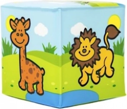 Mäkká penová hryzacia kocka s pestrými ilustráciami zvieratiek poteší bábätká od narodenia, podporuje rozvoj zmyslov a jemnej motoriky a je bez ftalátov a bezpečná na hryzenie.