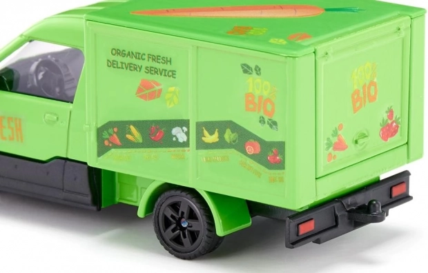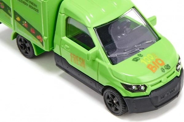 Doručovanie čerstvých bio produktov priamo k dverám! Tento ekologický dodávkový kamión je precízne navrhnutý s detailmi, ktoré podporujú hru a učenie o udržateľnosti.