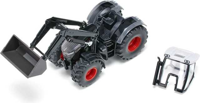 Tento traktor je vyrobený z kovových a plastových komponentov, čo zaručuje odolnosť a bezpečnosť pri hre. Pohyblivé časti ako nakladač a odnímateľná kabína dodávajú modelu na autenticite a zábavnosti.