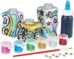 Objavte zábavné tvorenie s kreatívnou sadou na maľovanie na sklo. Sada obsahuje všetko potrebné na vytvorenie originálnych dekorácií – 3 vázy, 6 trblietavých farieb, štetec, ozdobné kamienky a modelovaciu hmotu. Podporuje kreativitu, jemnú motoriku a rozvoj detskej fantázie.