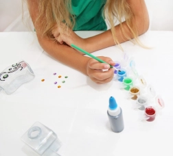 Súčasťou balenia sú 3 vázy pripravené na dozdobenie, štetec, ozdobné kamienky a modelovacia hmota na obkresľovanie tvarov. Deti si užijú radosť z tvorby a nádherný výsledok, ktorý ozdobí izbu alebo poteší ako darček.