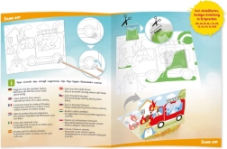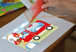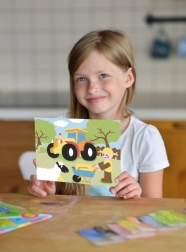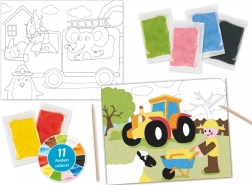 Táto kreatívna sada z piesku je skvelou voľbou pre malých tvorcov od 6 rokov. Jednotlivé časti motívu stačí postupne odkrývať a posypať farebným pieskom – farby sa prichytia na samolepiacu plochu a vznikne jasný, čistý obraz. Set ponúka dva obľúbené motívy: traktor a hasičské auto.